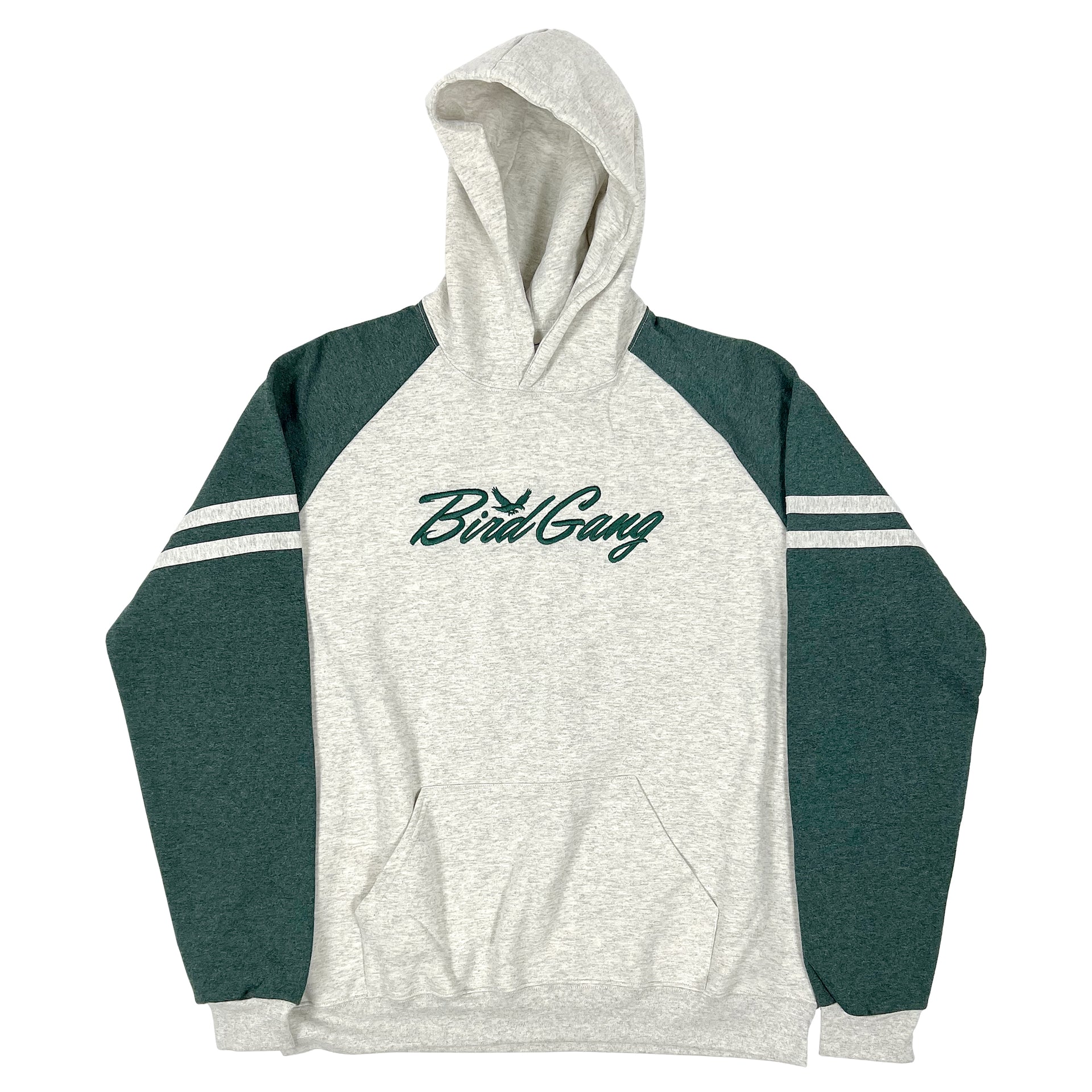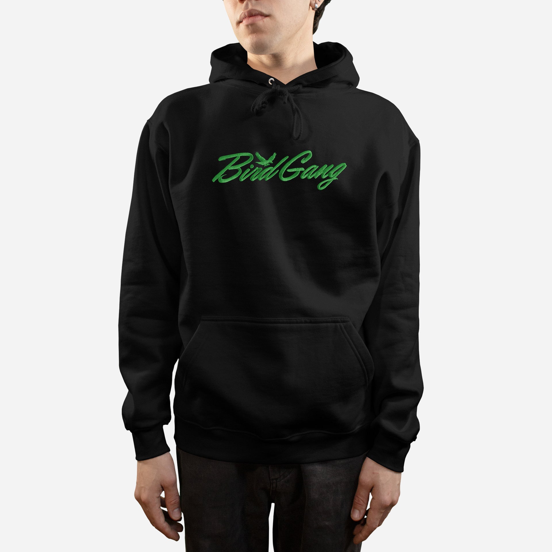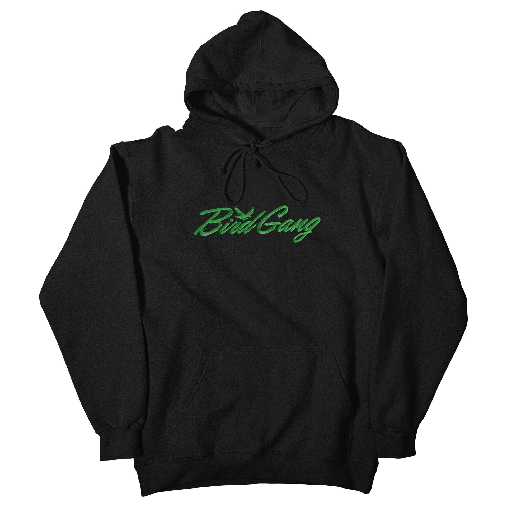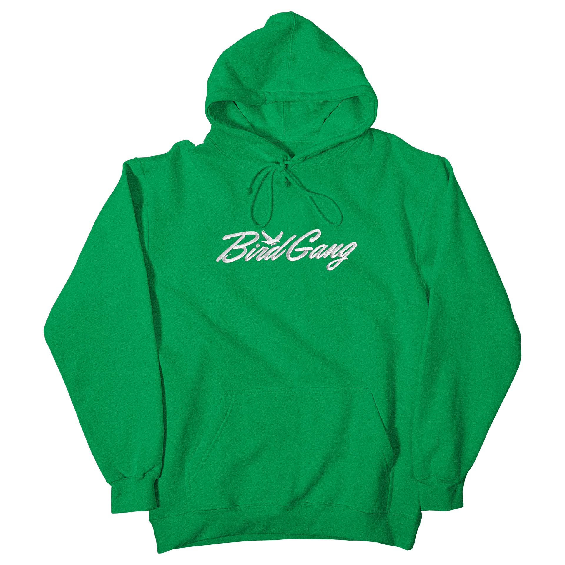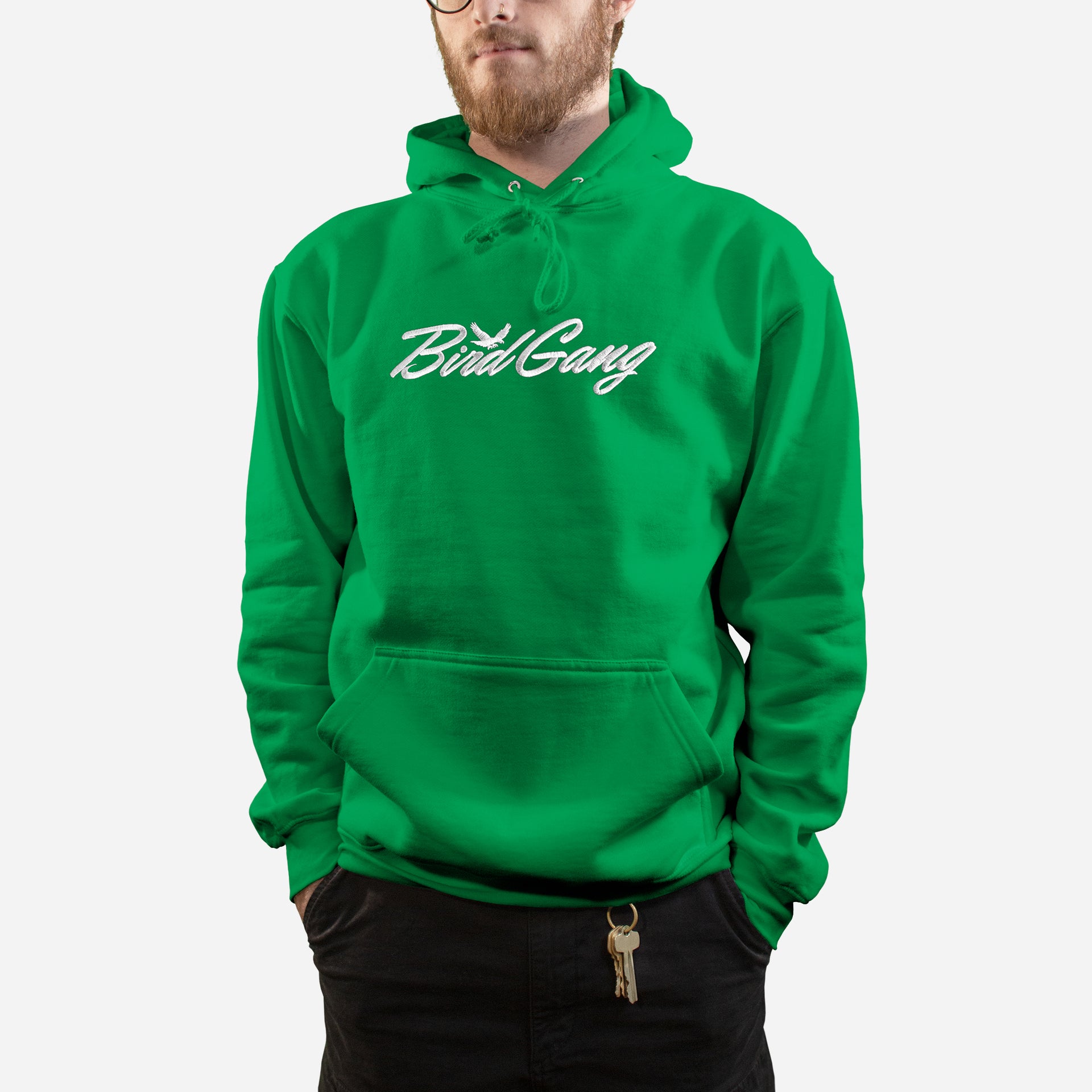 Embroidered on black Beimar F102, irish green Gildan G185, or oat heather / green heather 97CR pullover hoodie.
