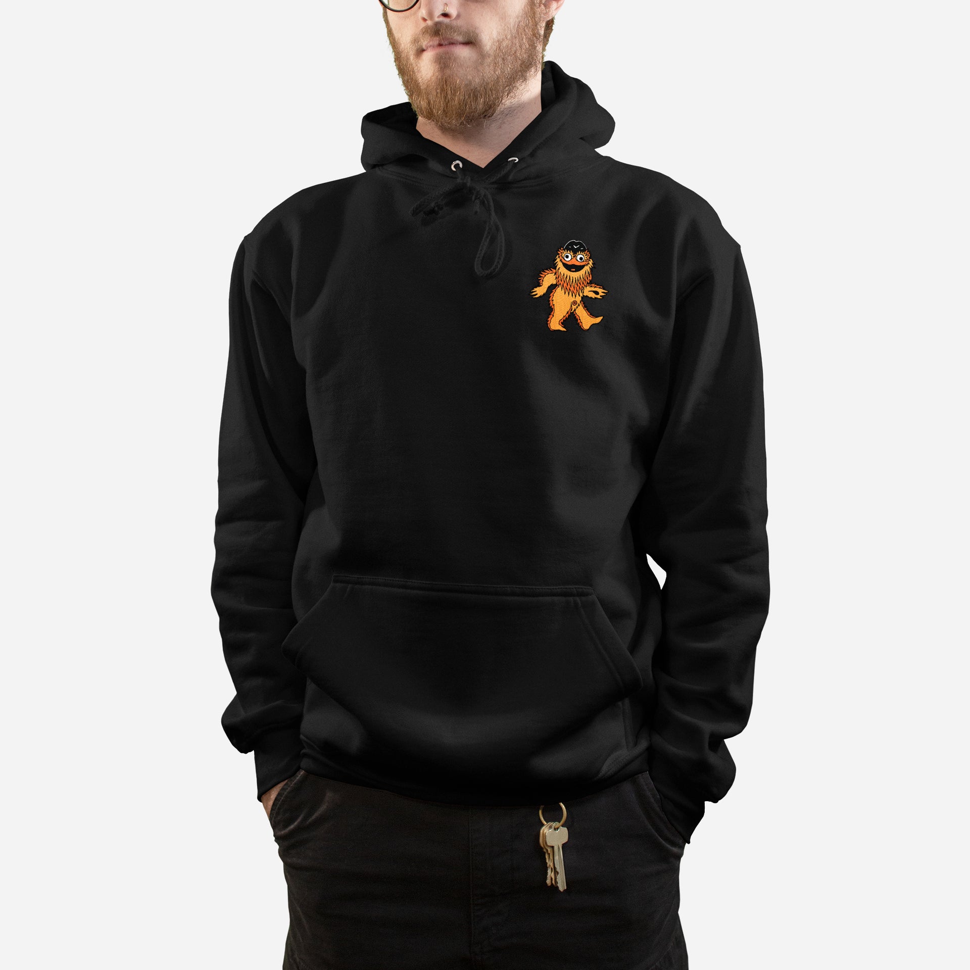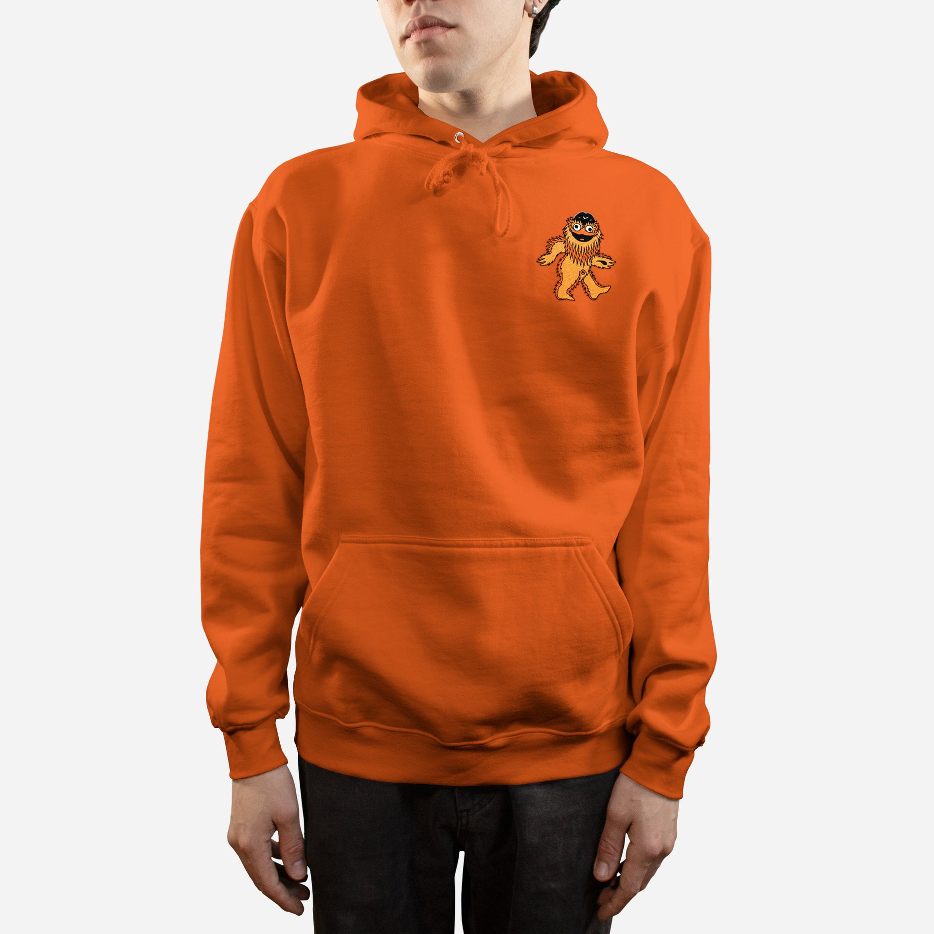 Embroidered on black Beimar F102 or orange Gildan G185 pullover hoodie.